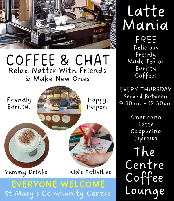 Delicious FREE Lattes, Cappucinos Tea etc and great company every Thursday.
